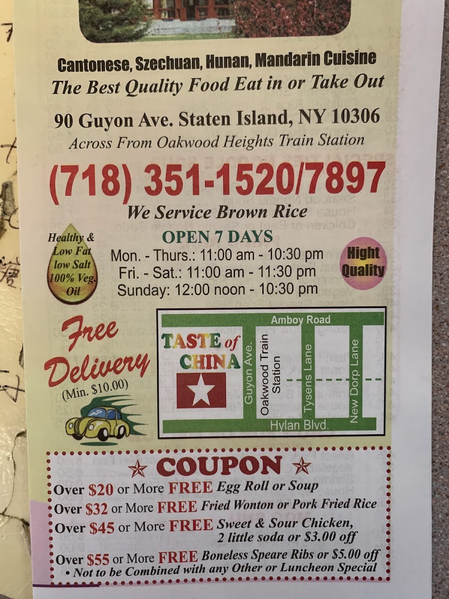 Welcome to Taste of China - Staten Island, where culinary tradition meets local charm! Nestled at 90 Guyon Ave, this beloved spot has earned its place as a go-to hub for authentic Chinese cuisine. The extensive menu features delightful options like wonton soup and hot and sour soup, perfect for warming your soul.